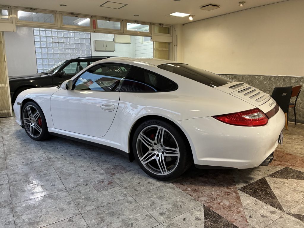 2009年式ポルシェカレラ4S(後期型997)スポーツクロノパッケージ3.4万km右Hキャララホワイト19インチターボホイール新車保証書、ポルシェセンター様整備記録簿付内外装良質正規ディーラー車です。